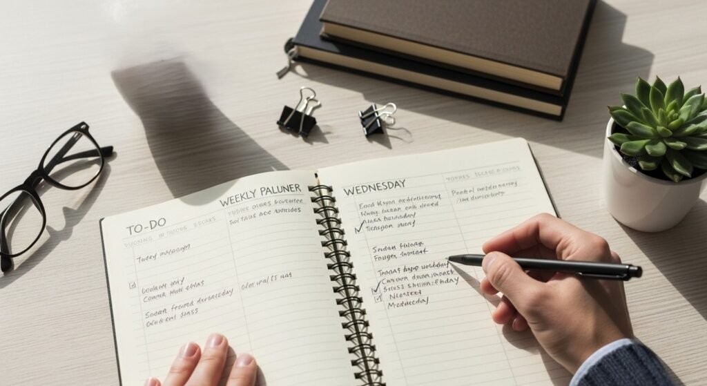 Last minute stress can be caused by failure to plan such significant activities like shopping of groceries, payment of bills, or house repairs. It is good to have a simple plan of what you need to do on a weekly basis so that all of it works out well.