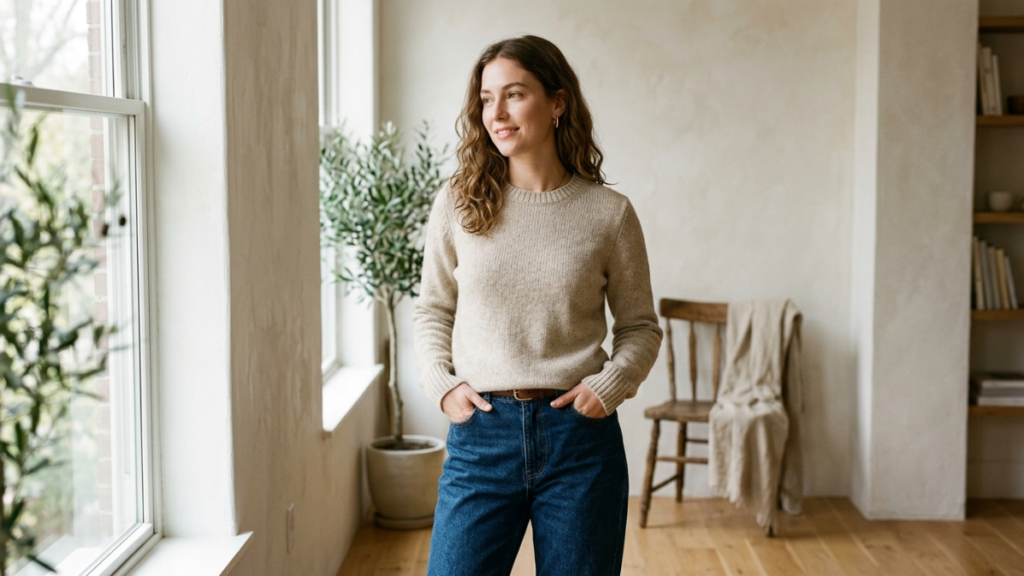 A textured wool blend top adds a refined layer of warmth while introducing subtle visual interest through its rich fabric detail and structure. Its ability to elevate even the simplest outfit makes it a dependable piece that blends comfort with understated sophistication, fitting seamlessly into both casual and polished winter looks.