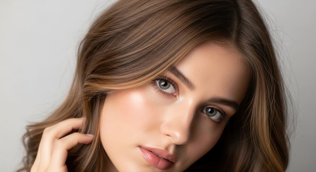Soft colors such as ash brown or soft beige can also be used to bring out some form of definition, with a slight shadow being cast in the hair. These colder colors are used to shape out the face visually, with a more structured and polished appearance and with no harsh contrasts.