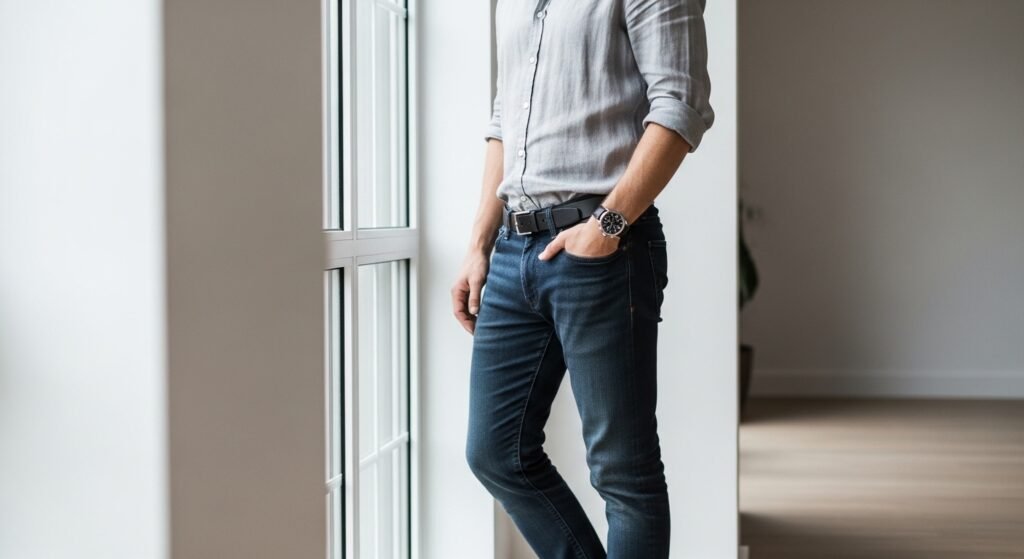 Accessories can be quietly added in form of a classic watch, a plain belt or least conspicuous sun glasses. Such minor touches add a style without overwhelming the general clean aesthetic.